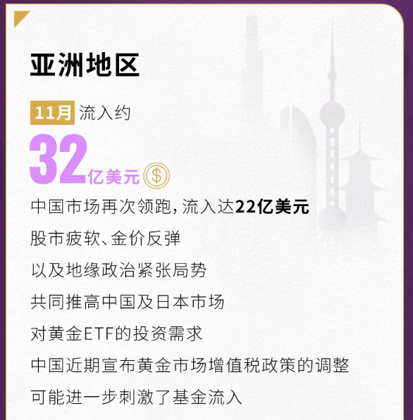 世界黄金协会数据显示,黄金投资需求持续增长,亚洲地区尤其是中国的黄金ETF流入总量持续领跑。